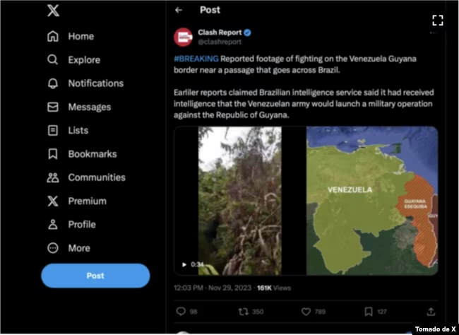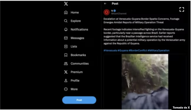 Sin embargo, al compartir ese video, Alert Channel citó una de sus publicaciones anteriores, afirmando que había estallado una guerra entre Venezuela y Brasil.